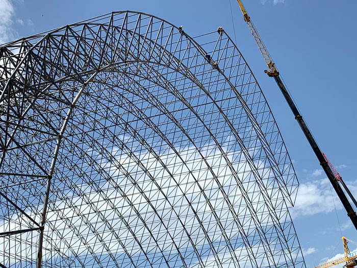 (2)网架加工前应对现场尺寸进行复测,确认无误后方可进行加工、安装;网架制作、运输、安装应遵守《空间网格结构技术规程》JGJ7-2010、《钢网架海口螺栓球节点》JG/T 10-2009、《钢网架海口螺栓球节点用高强度螺栓》 GB/T 16939-2016、《海口钢结构海口工程海口施工规范》 GB50755-2012、《海口钢结构海口工程施工质量验收标准》 GB50205-2020。